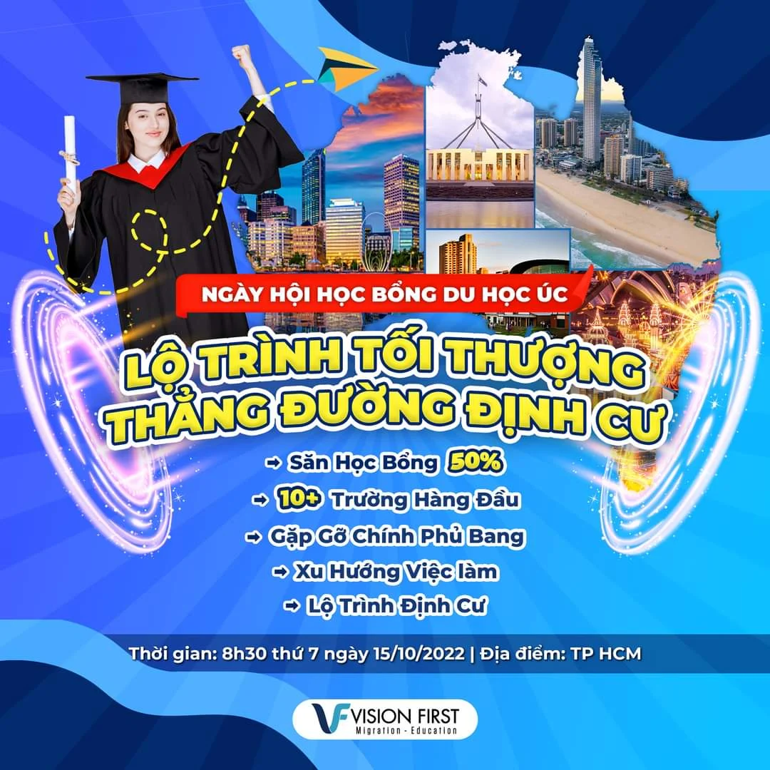 Vậy còn chần chờ gì, hãy cùng “phù thủy” Vision First khám phá ngay LỘ TRÌNH TỐI THƯỢNG – THẲNG ĐƯỜNG ĐỊNH CƯ tại Ngày hội học bổng du học Úc sắp tới!