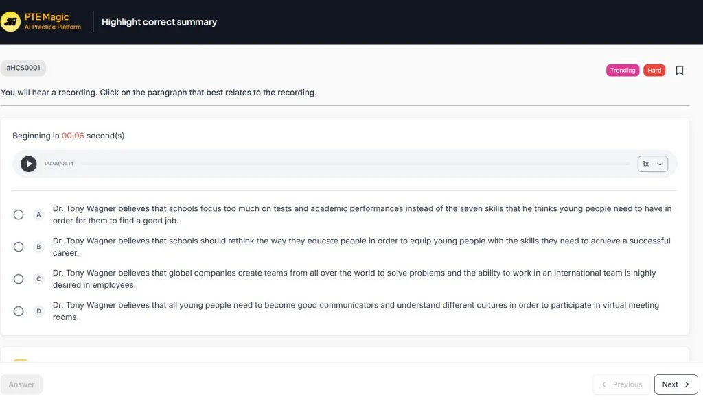 Nhiệm vụ Nghe một đoạn âm thanh, thí sinh phải chọn đoạn tóm tắt chính xác