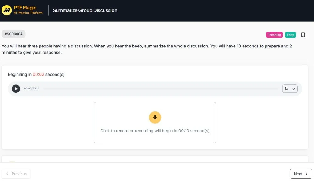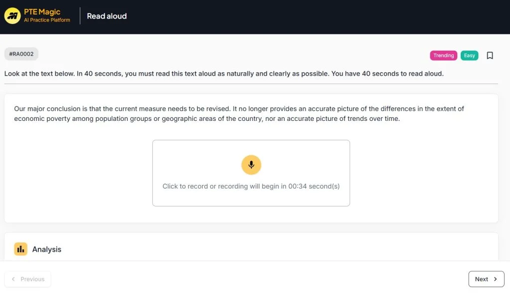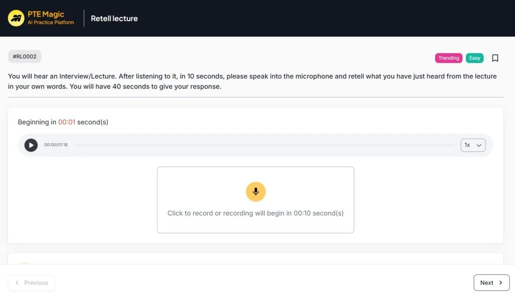 Lời khuyên từ giáo viên: Nếu lỡ đọc sai thì không nên dừng lại để sửa mà hãy đọc tiếp để tối ưu điểm fluency, đọc xong Next luôn.