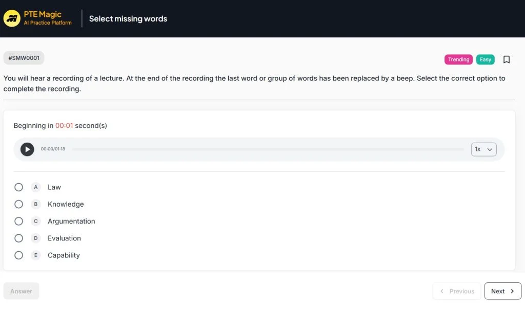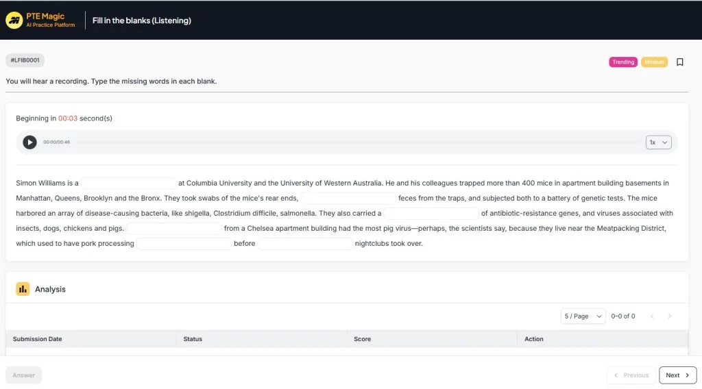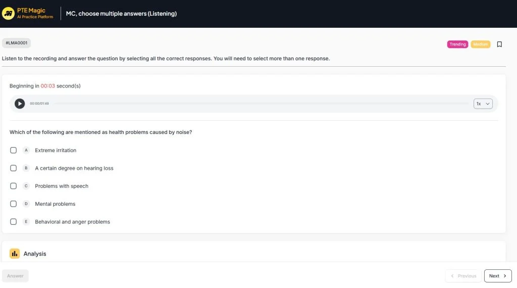 Phần thi PTE Listening