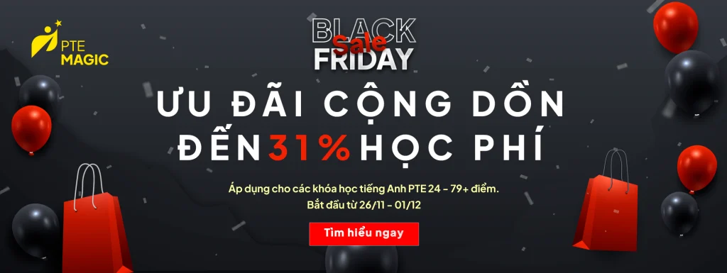 Điều đó có nghĩa là BLACK FRIDAY – Ưu đãi cộng dồn học phí đến 11%, sẽ giúp bạn sớm hoàn thành mục tiêu có điểm chứng chỉ Tiếng Anh PTE trong năm 2025 này mà vẫn tiết kiệm kha khá chi phí.