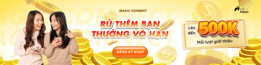 Bạn yêu thích trải nghiệm học tập tại PTE Magic? Vậy tại sao không giới thiệu khóa học của PTE Magic với bạn bè để nhận ưu đãi tiền mặt dành cho cả bạn và người được giới thiệu?