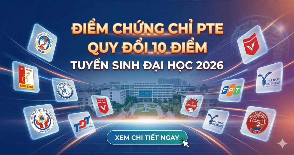 Tùy vào đề án tuyển sinh của từng trường, nhưng theo xu hướng phân hóa điểm số năm 2026, mức PTE Academic 65+ (tương đương IELTS 7.5) thường là ngưỡng an toàn để đạt điểm 10 tuyệt đối. Một số trường top trung có thể chấp nhận mức 58+ cho điểm 10, nhưng con số này đang có xu hướng tăng lên để đảm bảo chất lượng đầu vào.